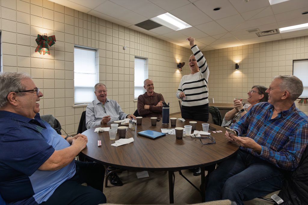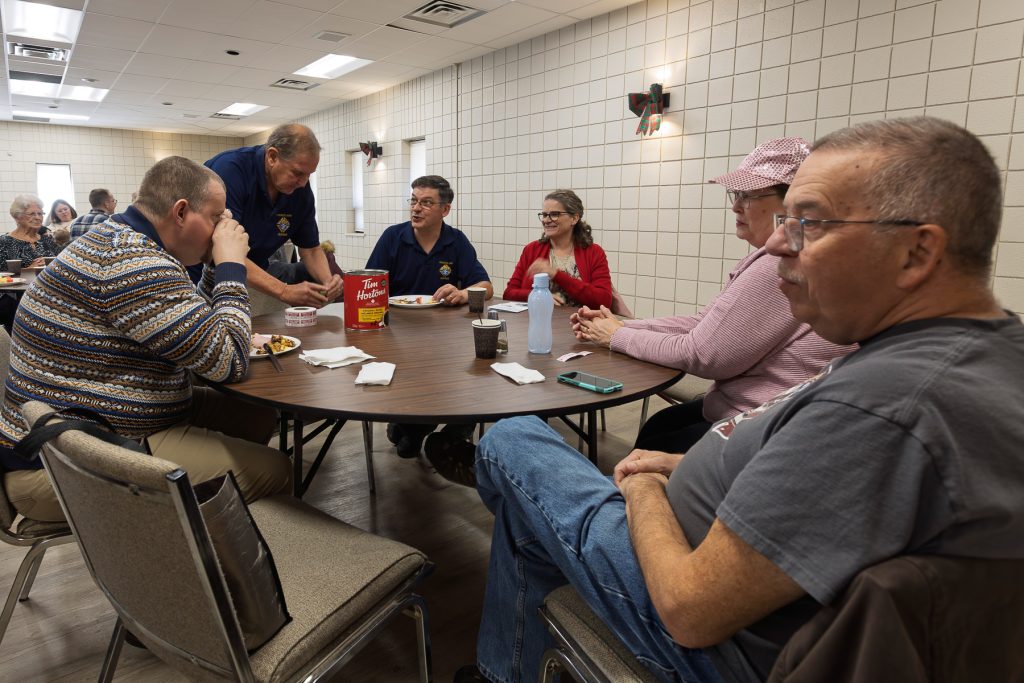 November 16, 2025 by St. Augustine's Parish Great turnout.So, who are you pulling for?Past Grand Knight, Tom Muldoon, with words of welcome, and thanks to the brunch crew.Lots of food.The 50/50 winner!